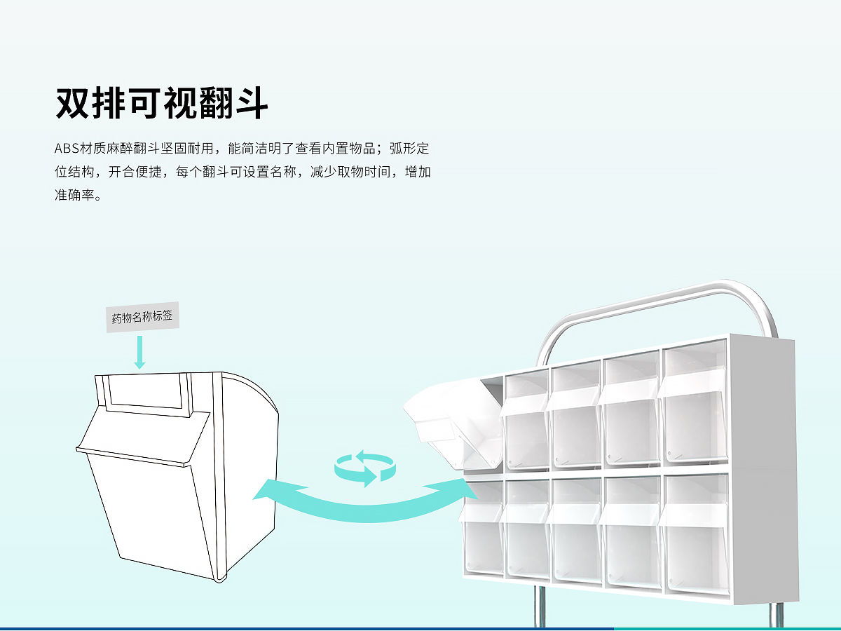 9.雙層五連翻斗式設計透明麻醉藥盒,有透明標簽框,可輕松摘離;