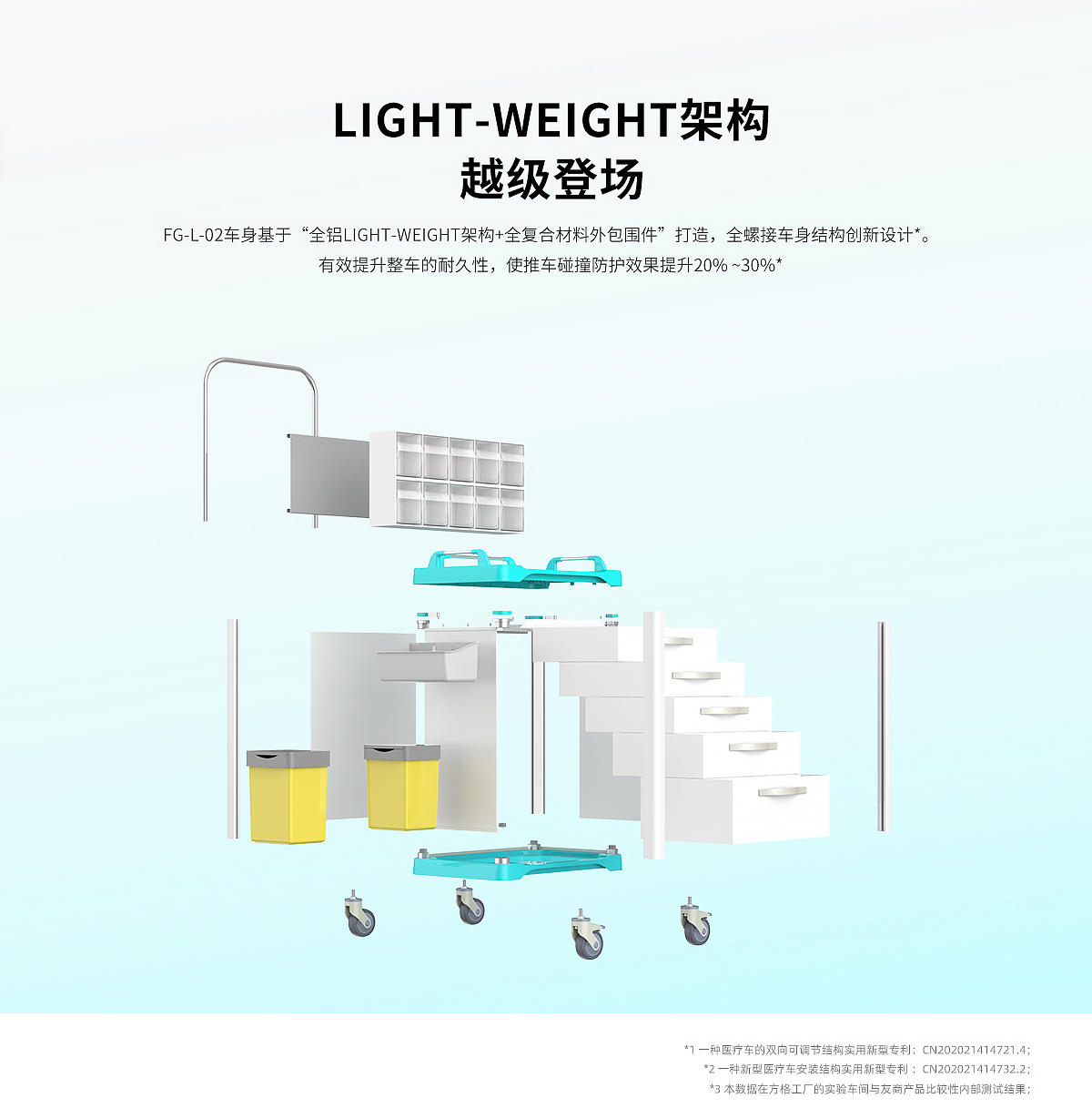 5.基于全鋁“Light-weight框架”打造,輕量化車身,涵蓋立柱和抽屜;將激光切割+開模成型工藝合為一體,耐撞、高強度、更輕盈;