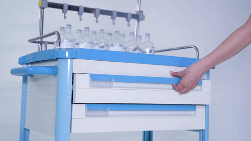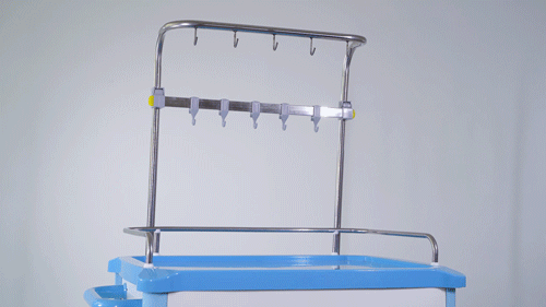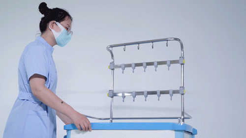 輸液掛鉤架整排升降設計,為使用帶來巨大便利;護士可根據實際操作情況調節掛鉤架的高度,只需輕抬即可實現;