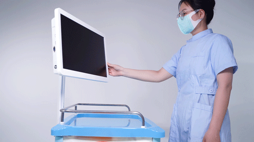 鋁合金材料加厚型顯示器支架,承重力強,無需擔心一體機脫落;可依據護理人員自身情況,對屏幕角度進行調整,上下左右都可傾斜,提高使用者的工作舒適性;