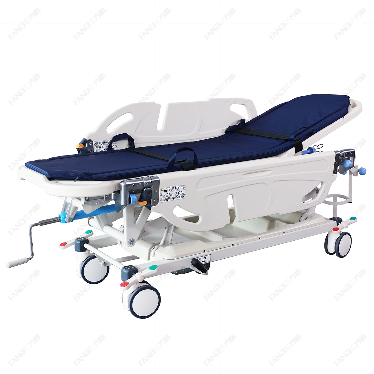5.兩側PP護欄,高度300mm;支持水平放置,可將病人與病床雙向平移;并具有雙安全鎖進行鎖定,防止誤操作,提高了操作的安全性;