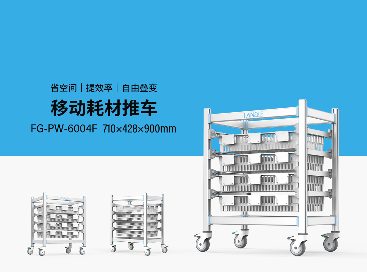 移動耗材推車以陽極氧化鋁無孔框架+ABS抗沖擊卡扣為核心,集成ISO模塊化籃筐與動態分格系統;2°微傾抽拉+雙剎車靜音腳輪實現低噪平穩轉向,緊湊機身適配狹小空間,全維度客制化滿足醫療場景高頻移動補給、精準分揀及嚴苛院感管控需求。