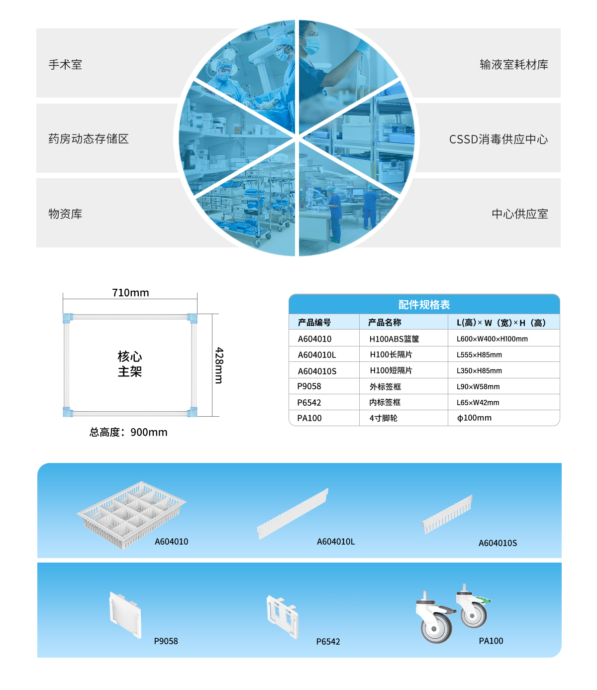 6. 籃筐內置自由分格系統,借助可調節隔片完成動態空間重組,精準匹配器械、藥品、耗材等多樣化存儲規格;