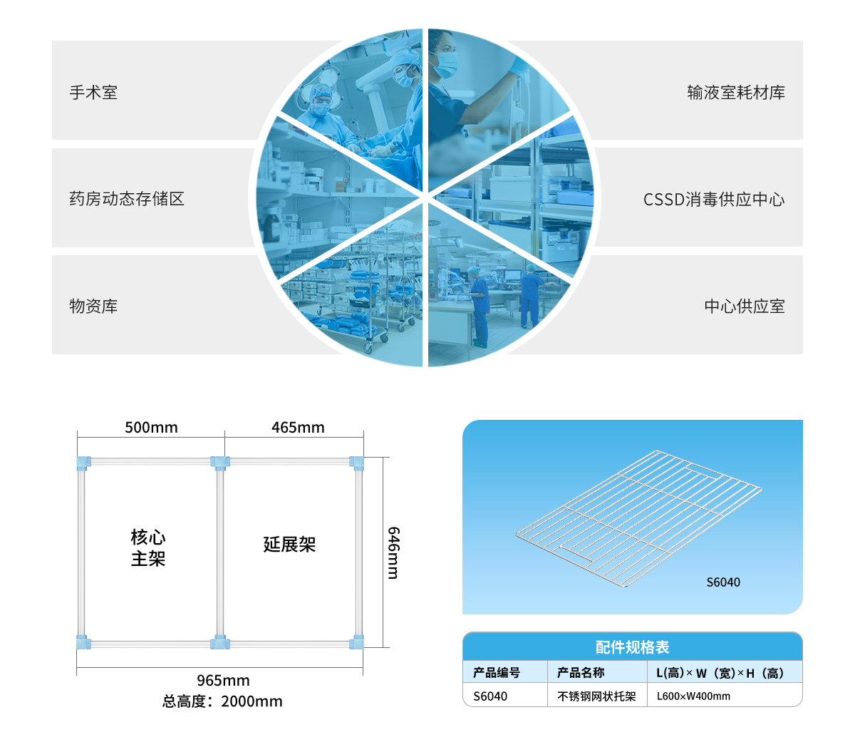 專為手術室(無菌器械暫存/分類管理)、消毒供應中心(滅菌器械周轉)、實驗室(精密器械防塵存儲)設計,適配高頻消毒、荷載均衡及地面調平場景,滿足高衛生標準、防菌防腐蝕及器械安全高效管理需求。
