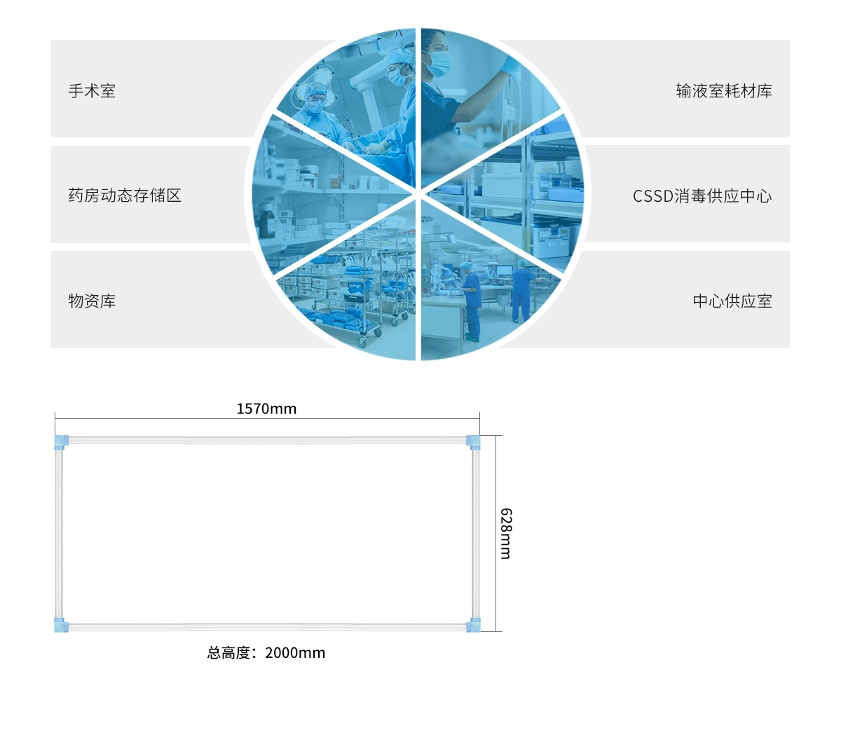 覆蓋CSSD消毒供應中心、醫院物資庫、科室二級庫房、手術室(無菌器械暫存/分類管理)、門診輸液區(物資快速配送),適配需高頻消毒、防菌防腐蝕及荷載均衡分布的醫療場景,滿足無菌環境高衛生標準與器械安全高效管理需求。