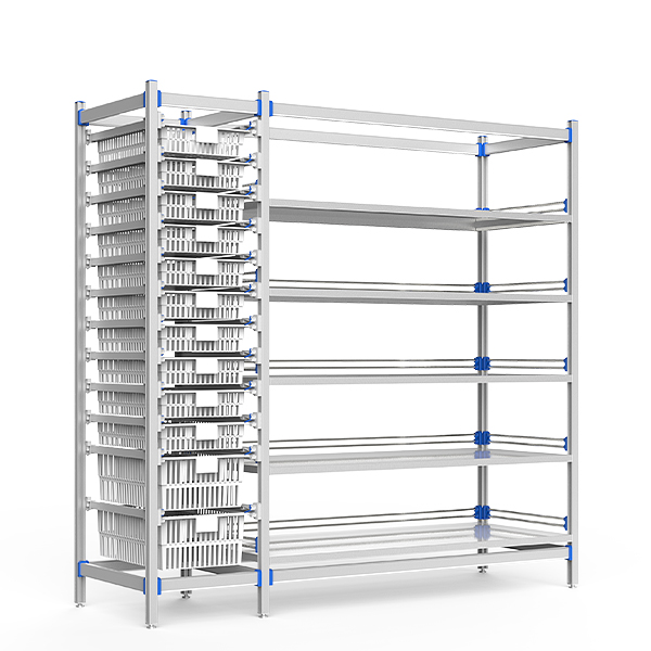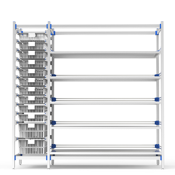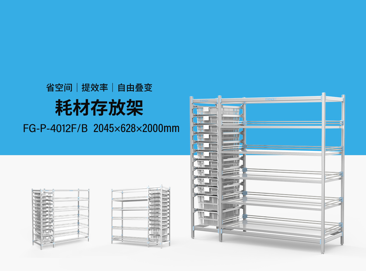 耗材存放架以陽極氧化鋁無孔框架+ABS抗沖擊卡扣為核心,集成ISO標準籃筐(淺/深雙規格)與304不銹鋼活動層板;三面圍欄防滑落+多維標示系統提升分揀效率,可調地腳適配復雜地面,全維度客制化滿足醫療場景高密度存儲、防菌防潮及跨品類混放需求。