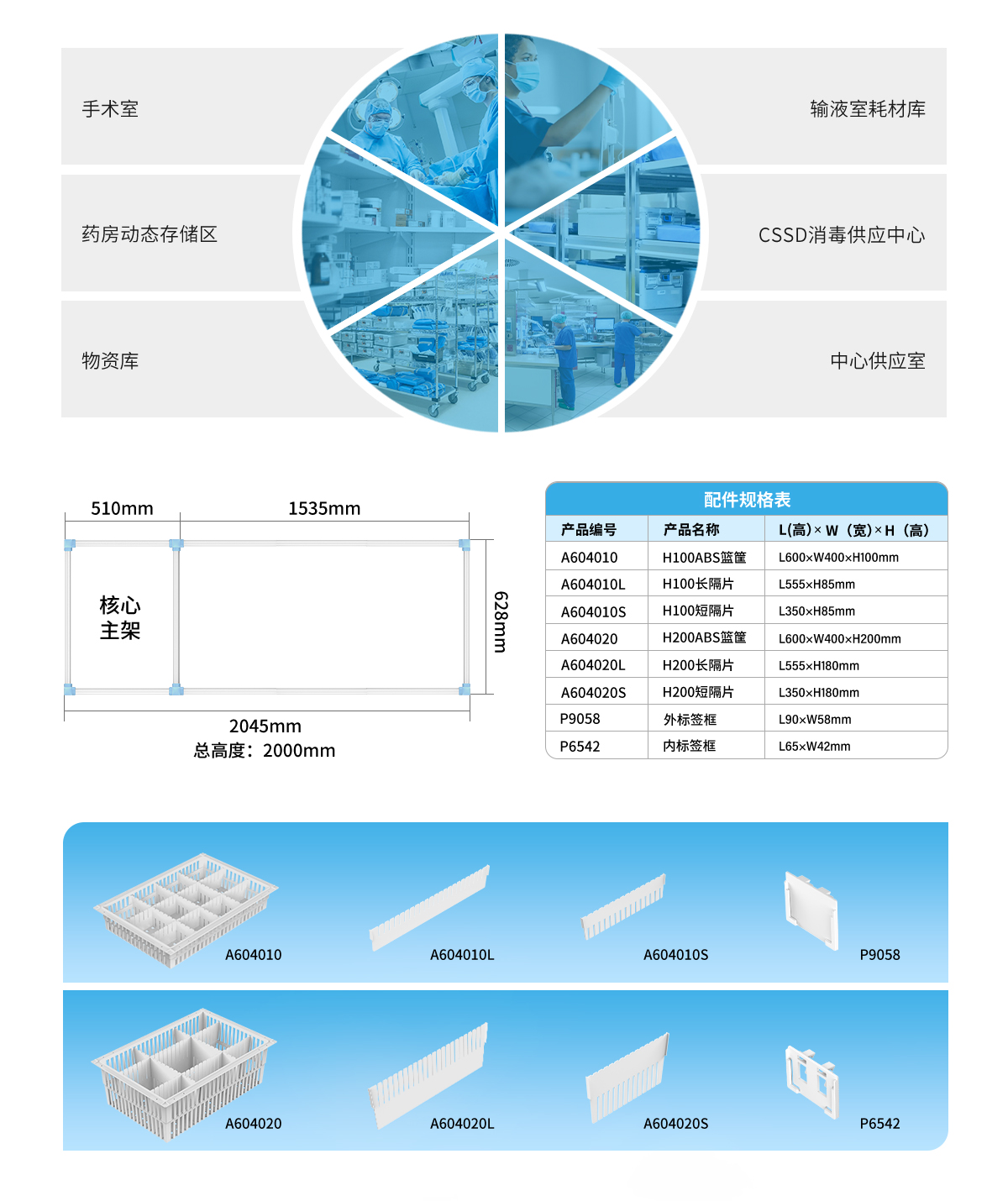 6. 籃筐內置自由分格系統,借助可調節隔片完成動態空間重組,精準匹配器械、藥品、耗材等多樣化存儲規格;