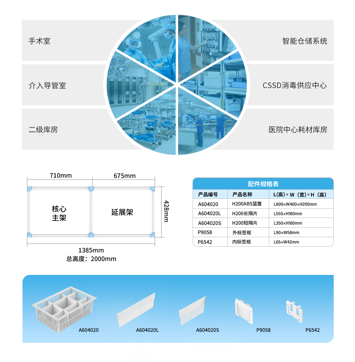 適配神經介入室(微導管防纏繞分層)、血管雜交手術室(長導絲/鞘管高密度懸掛)、急診介入中心(取栓支架快速定位),解決導管密集存儲防滑落、潮濕環境抗腐蝕及多術式耗材混存痛點,兼容神經/血管介入超精細耗材管理。