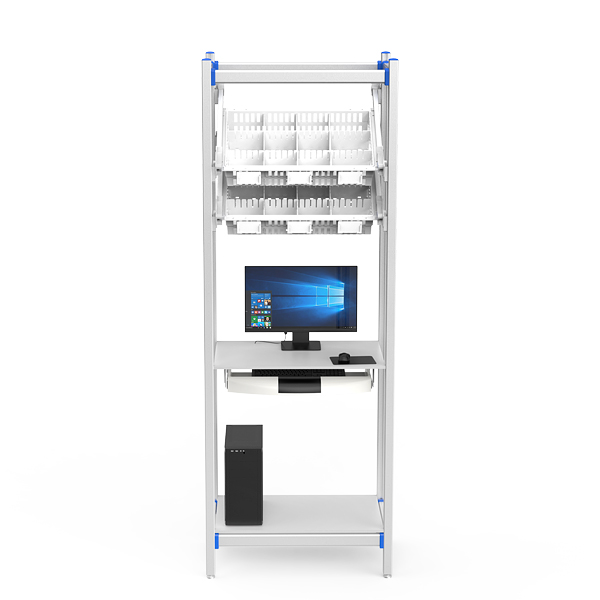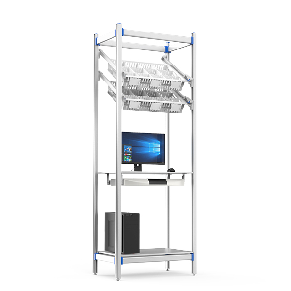 適配護士站(耗材存儲+電子病歷操作)、檢驗科(試劑存取+數據錄入)及門診治療室(耗材快取+患者信息處理),集成中層電腦區與65°傾斜籃筐設計,實現防菌存儲與工作站功能一體化,滿足院感管控及空間高效復用需求。