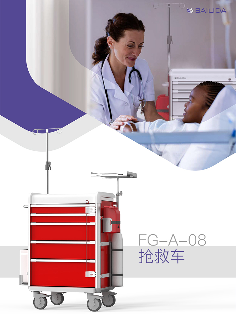 來自臺灣BAILIDA醫療家具知名品牌,集臺灣新銳的醫療產品設計理念與精湛的制造工藝與一身,多次殊榮iF、IDEA國際設計大獎。整車造型利用環繞包覆的鋁框,表現出猶如緞帶圍繞車身的感覺,并以車身轉角弧線呈現白衣天使的優雅,讓簡潔、素雅的搶救車成為患者心中溫柔婉約的照顧者,同時保證急救空間使用較大化的方便及安全;