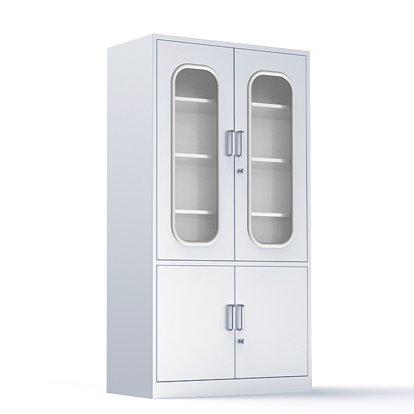 • 上段為鋼化玻璃可視柜門,內部設3塊隔板,用于分類展示與存放中小型器械