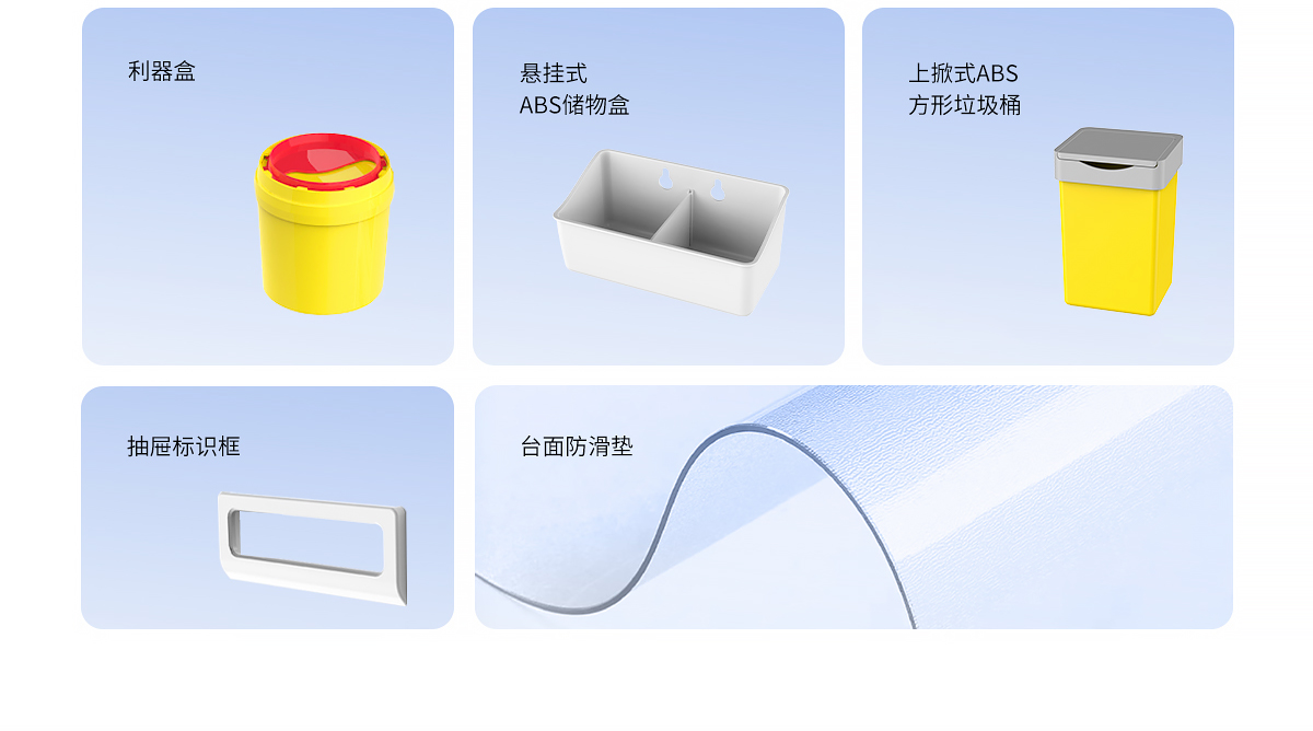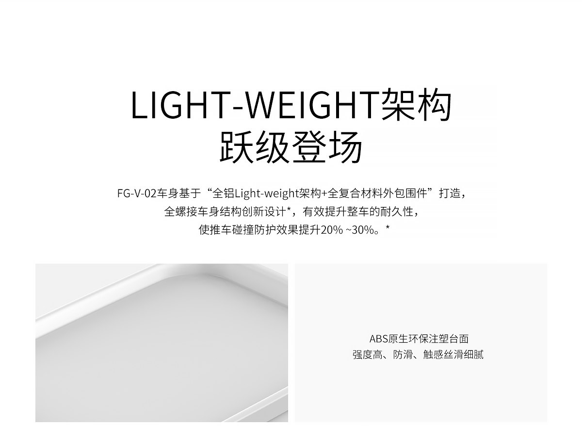 2.上下臺面采用ABS工程原生塑料注塑成型,上臺面配置單面磨砂1.5MM厚度軟玻璃,防止物品在臺面滑行;