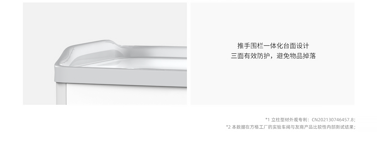 3.推手圍欄一體化臺面設計,三面圍邊,有效防止物品掉落;