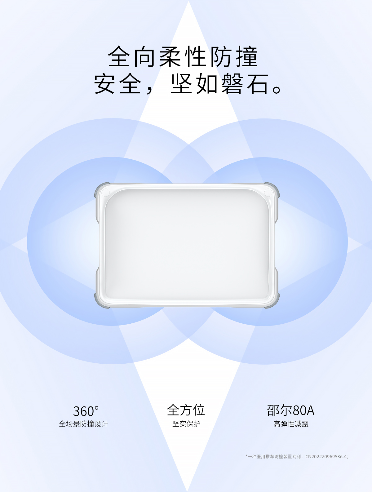 15.國家專利360°柔性防撞吸能設計,當發生外力撞擊時,沖擊力通過高彈性減震耐磨材料吸收,分解并消散,使車身保持穩定安全;