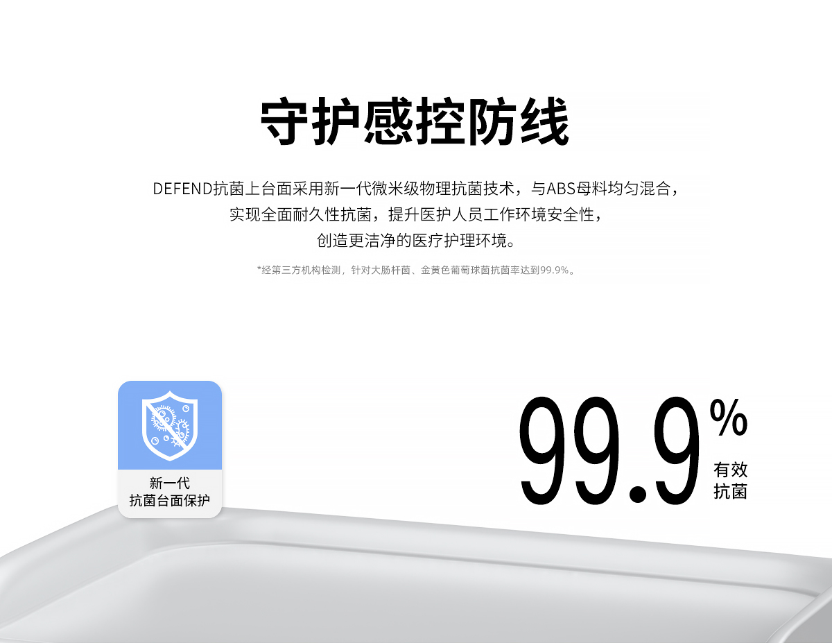 1.Defend抗菌上臺面采用新一代微米級物理抗菌技術,與ABS母料均勻混合,達到持久性的抗菌保護,環保,安全,健康;