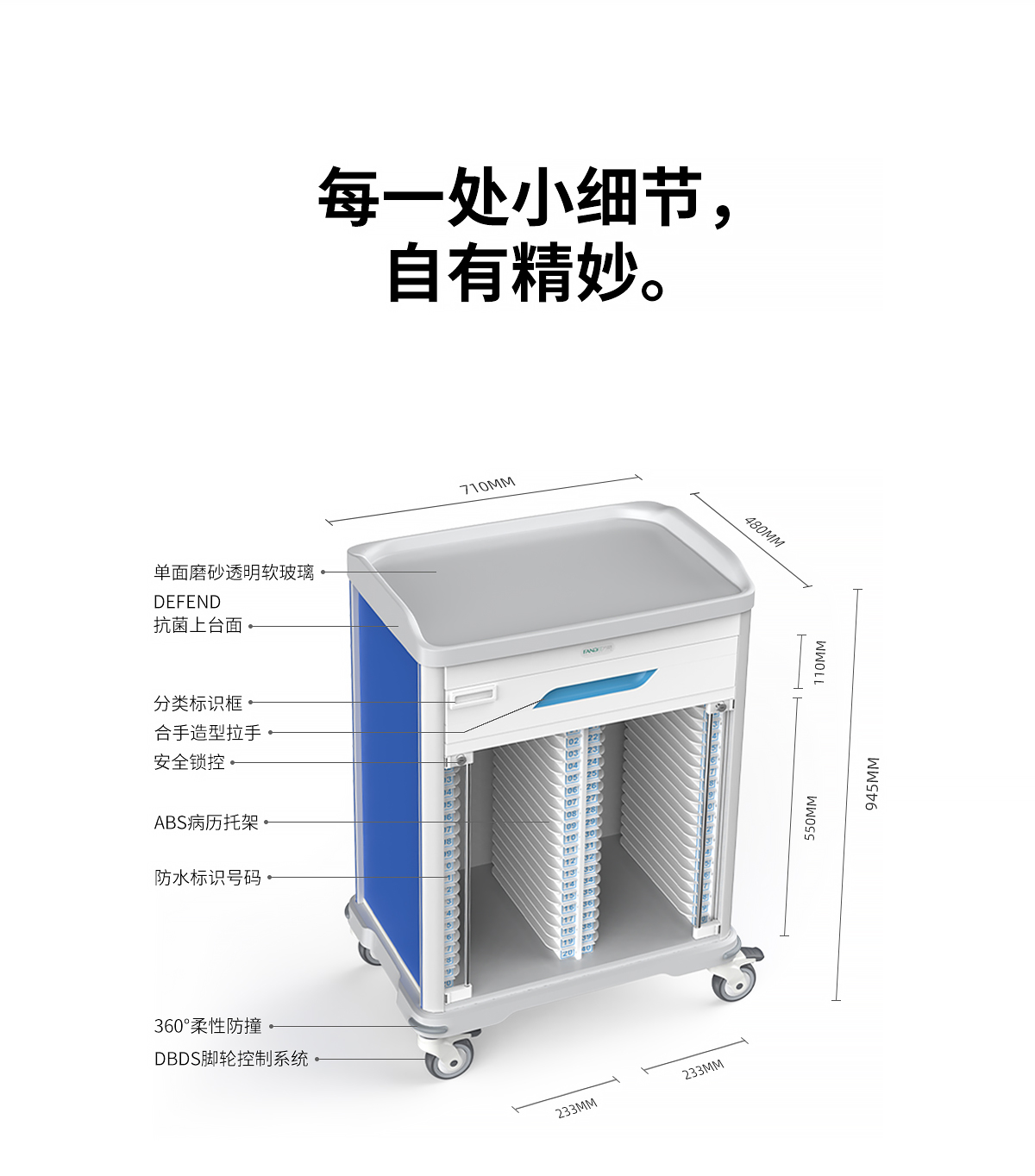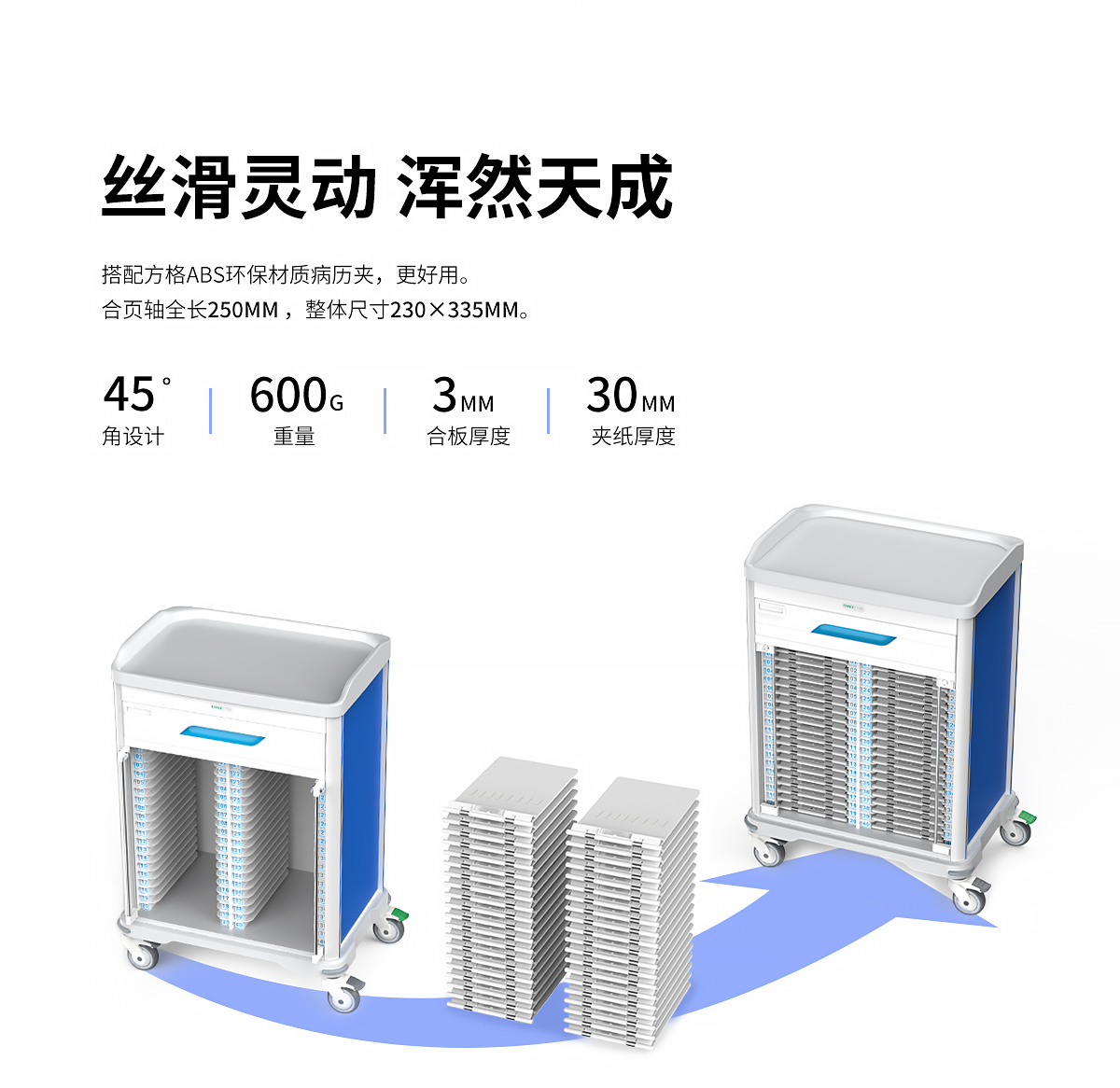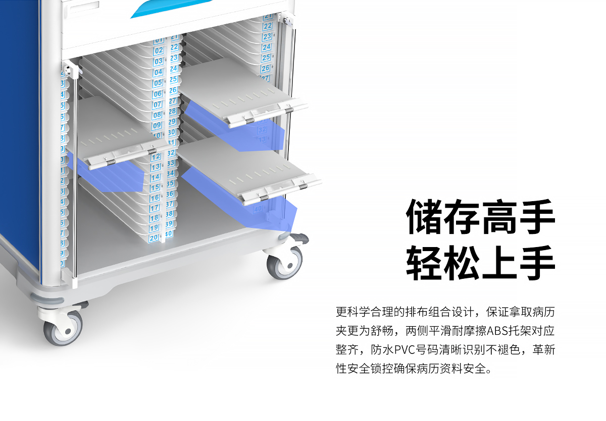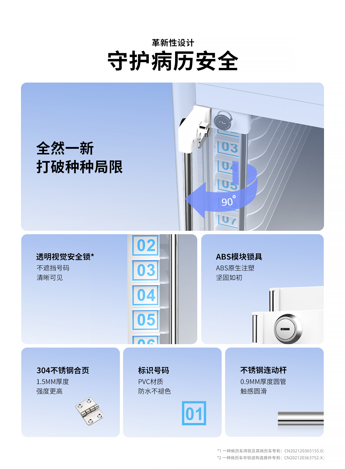 12.安全鎖控兩個國家實用新型專利加持,整體模塊化設計,不擋標識,開合更輕松,可拆卸式配件,更換方便,隨時確保病歷資料安全;
