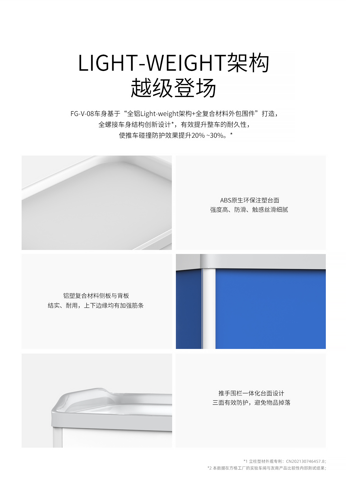 5.鋁合金材質車體立柱,承載量大,利用M12芯體連接臺面,達到整車穩固不變形,強度高;
