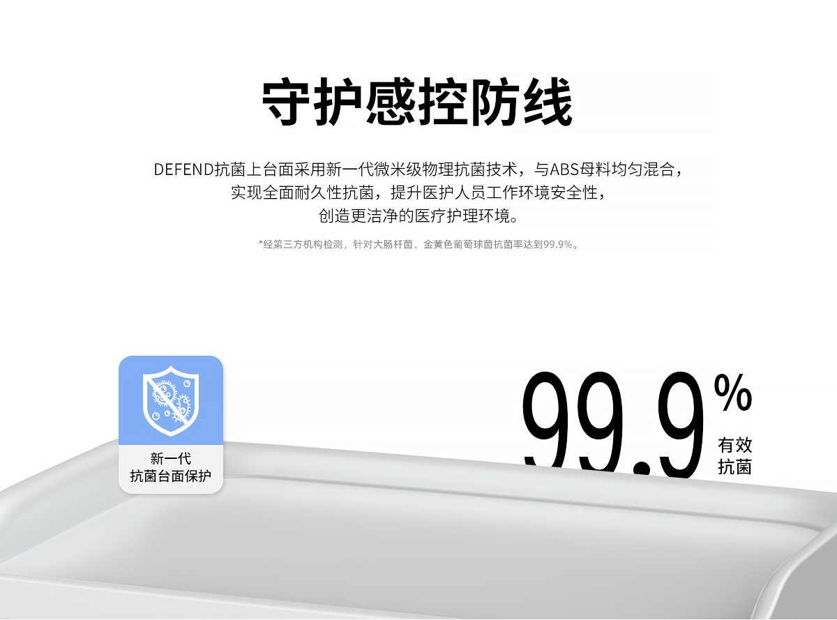 1.Defend抗菌上臺面采用新一代微米級物理抗菌技術,與ABS母料均勻混合,達到持久性的抗菌保護,環保,安全,健康;
