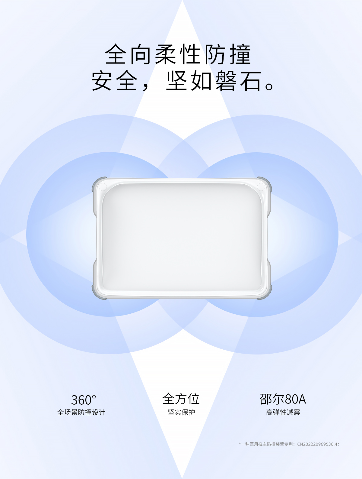 13.國家專利360°柔性防撞吸能設計,當發生外力撞擊時,沖擊力通過高彈性減震耐磨材料吸收,分解并消散,使車身保持穩定安全;