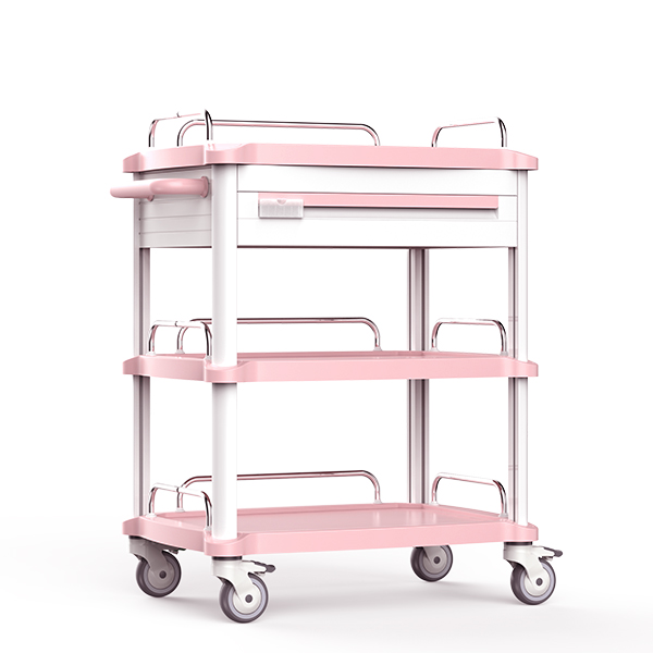6.ABS治療車臺面下配抽屜一只,精致美觀抗腐蝕,外形豪華大方;抽屜內部有自由插片,可以隨意組合。