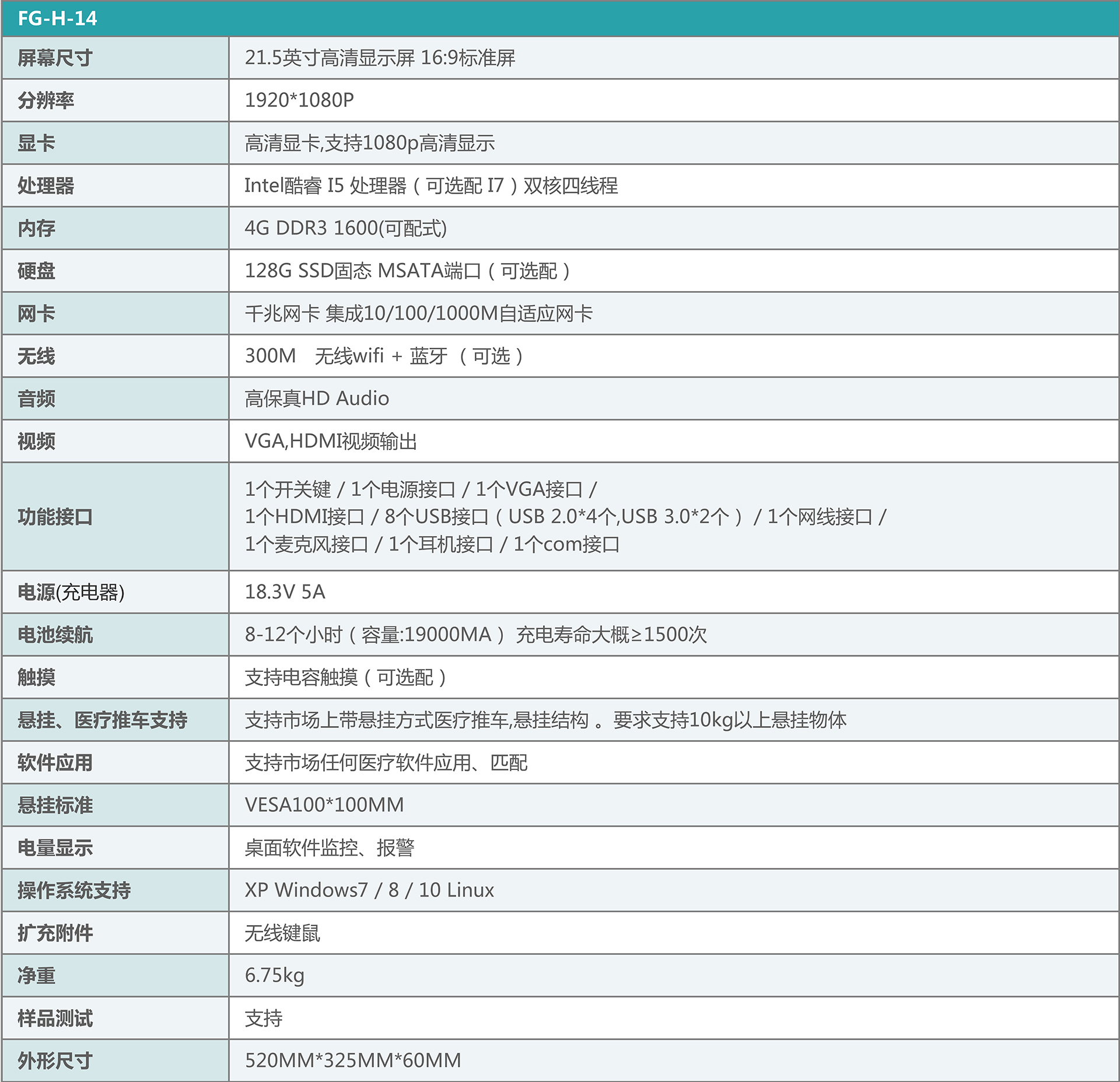 FG-H-14一體機視頻參數詳情