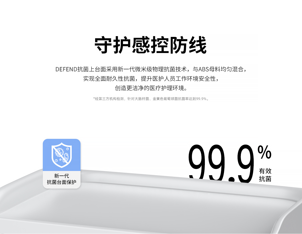 1.Defend抗菌上臺面采用新一代微米級物理抗菌技術,與ABS母料均勻混合,達到持久性的抗菌保護,環保,安全,健康;