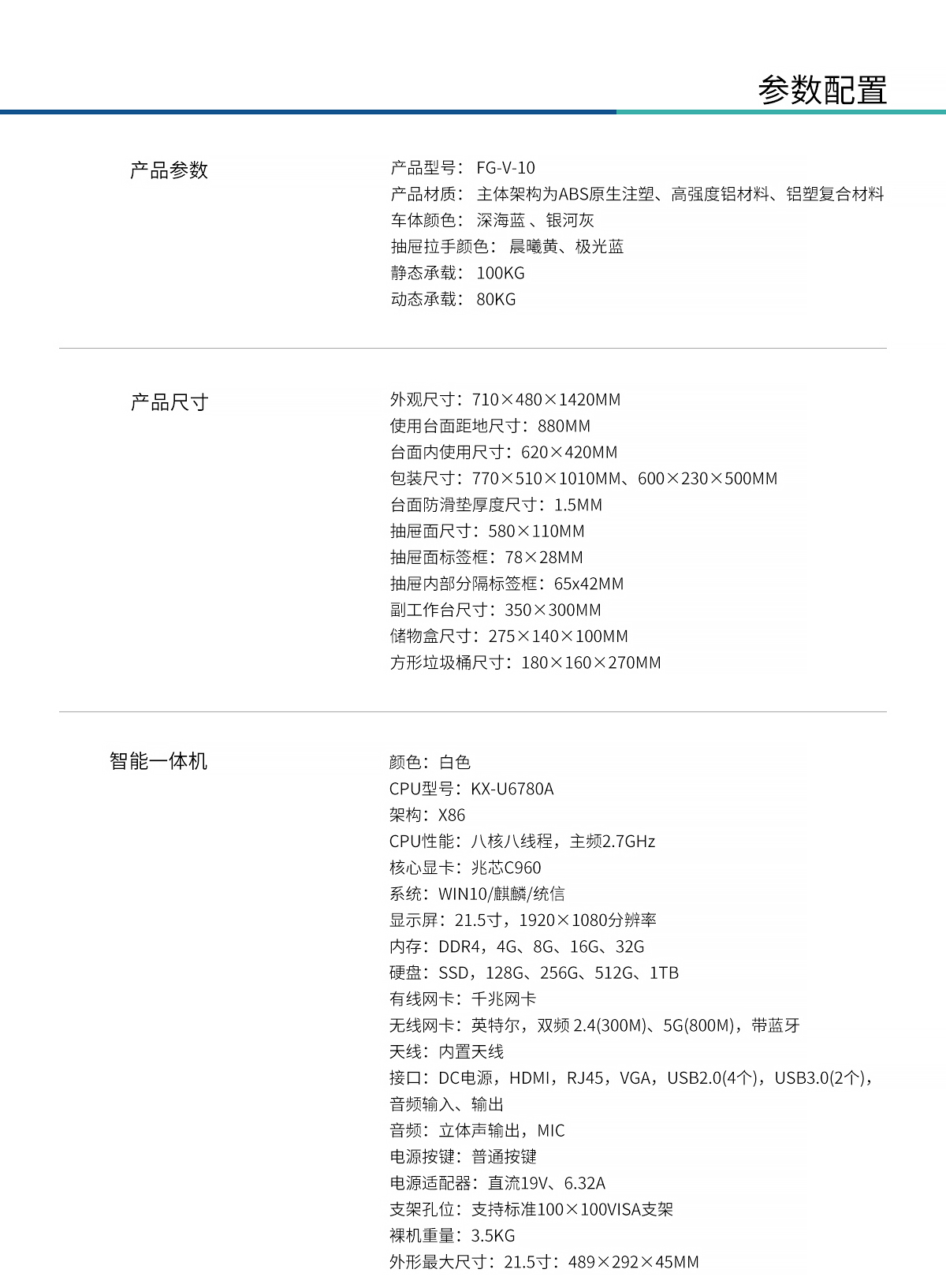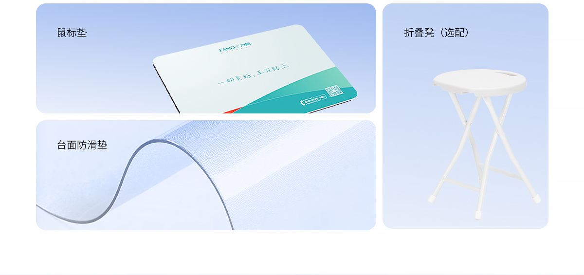 2.上下臺面采用ABS工程原生塑料注塑成型,上臺面配置單面磨砂1.5MM厚度軟玻璃,防止物品在臺面滑行;