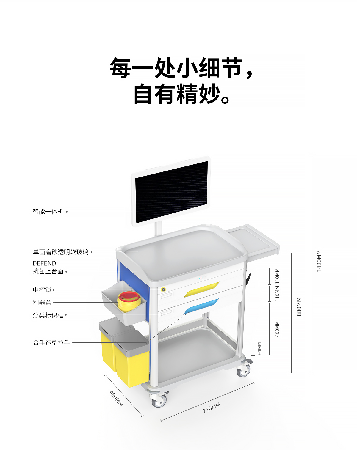 8.兩層抽屜設計,抽屜面高度110MM,每個抽屜均配有標簽識別框;