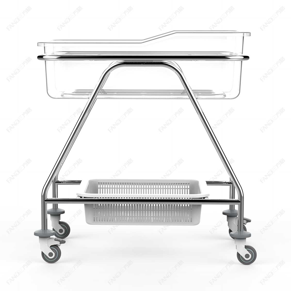 采用環保全透明ABS材料的A05-II方格牌醫院嬰兒車,可以清楚觀察嬰兒的一舉一動,從而強化母嬰交流的重要性。搭載PA6材質醫用級靜音腳輪,轉向靈活順暢,結合方格原創整車流線型設計,不銹鋼車身歷經五層拋光工藝,使整車獨具人性化工業設計的美感。
